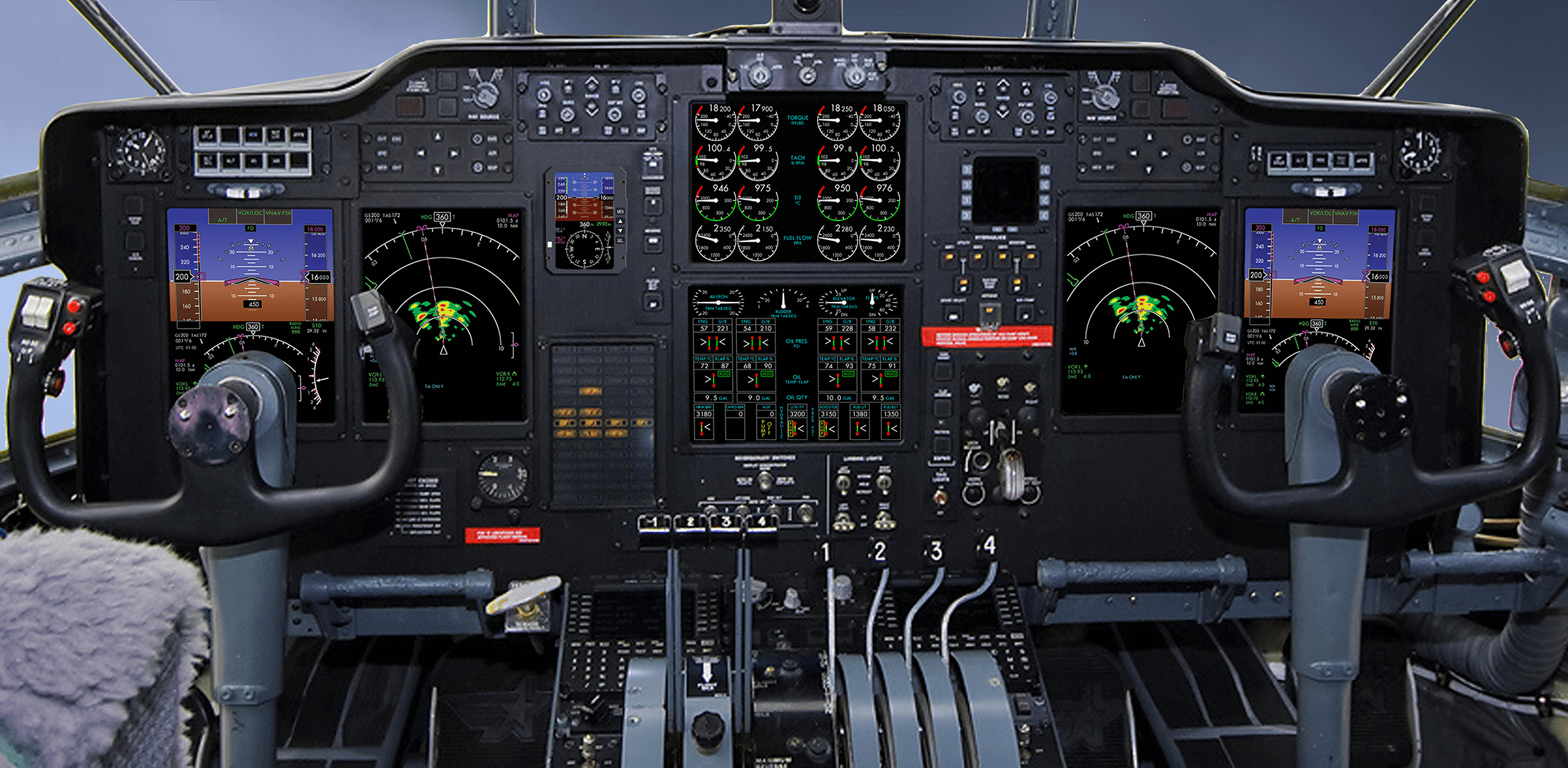 Instead of relying on twenty-eight (28) individual electromechanical instruments, the EIDS consolidates all engine and propeller-related parameters into two high-resolution Liquid Crystal Displays (LCDs) and one control panel. This upgrade not only improves cockpit efficiency and readability but also reduces weight, heat, and maintenance demands.